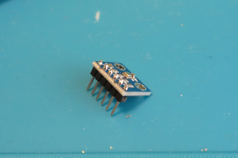 最後のはんだ付けが残っていた。BME280のオスピン付けだ。直角に気を付けながら、ちゃちゃっと仕上げて完成。