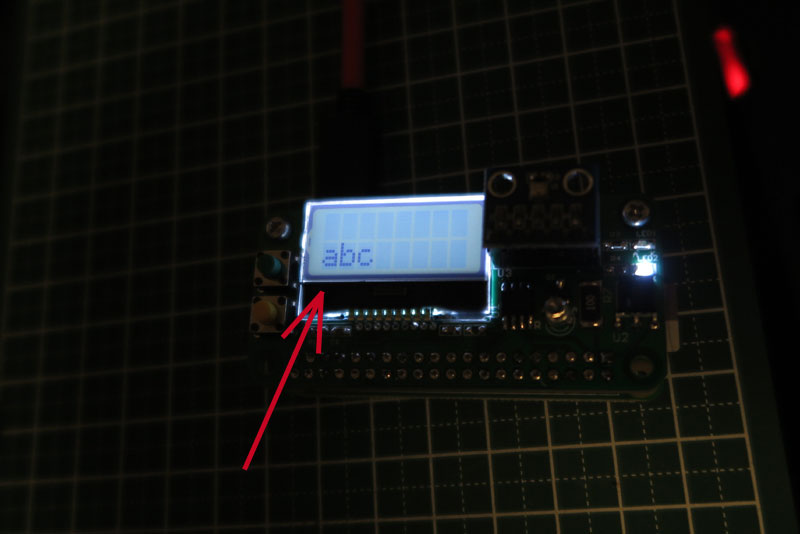 これで、下の行に「abc」の文字が表示された。 コンパイルが終わっていないと、printLCDでエラーになるので注意。