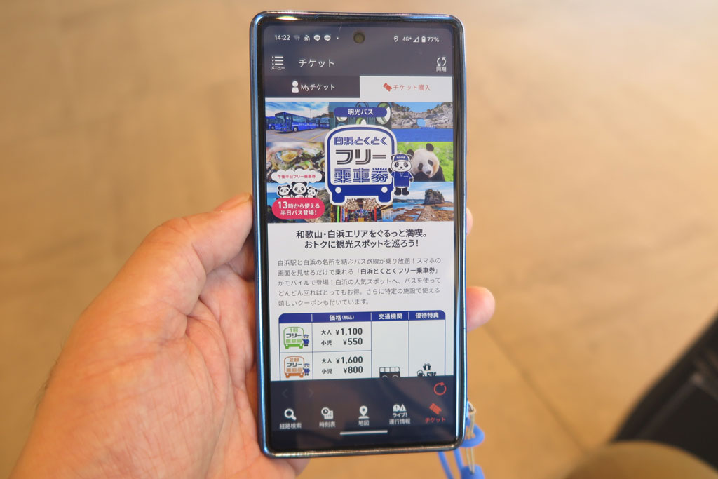 白浜でバス移動でホテルに移動。白浜ではバス移動がメインンとなりそうなので、乗り放題券を購入して自由に移動できるようにする。バスルートと時刻表は重要。