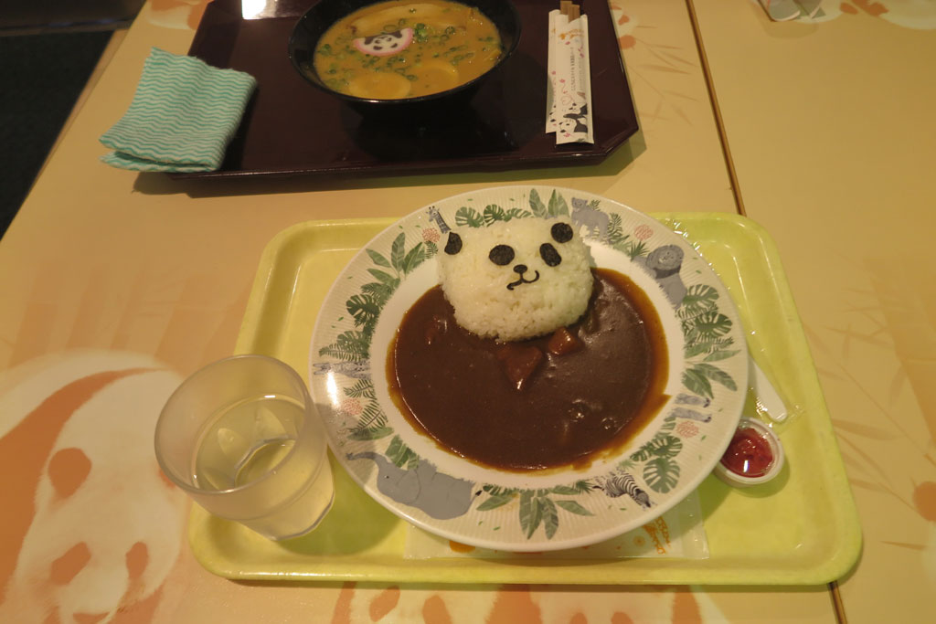 昼が近くなったので、食事をとる。混雑すると嫌なので早めに昼食を。ラーメンとカレー。どっちもパンダづくし。