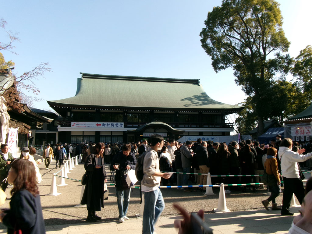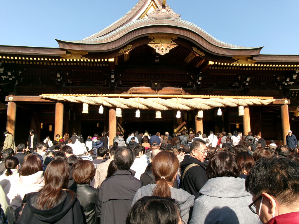 当然本殿参拝も行列となっているが、横幅いっぱいのたくさんの列なのでそれなりに進んでいく。列に並んで順番を待って参拝。