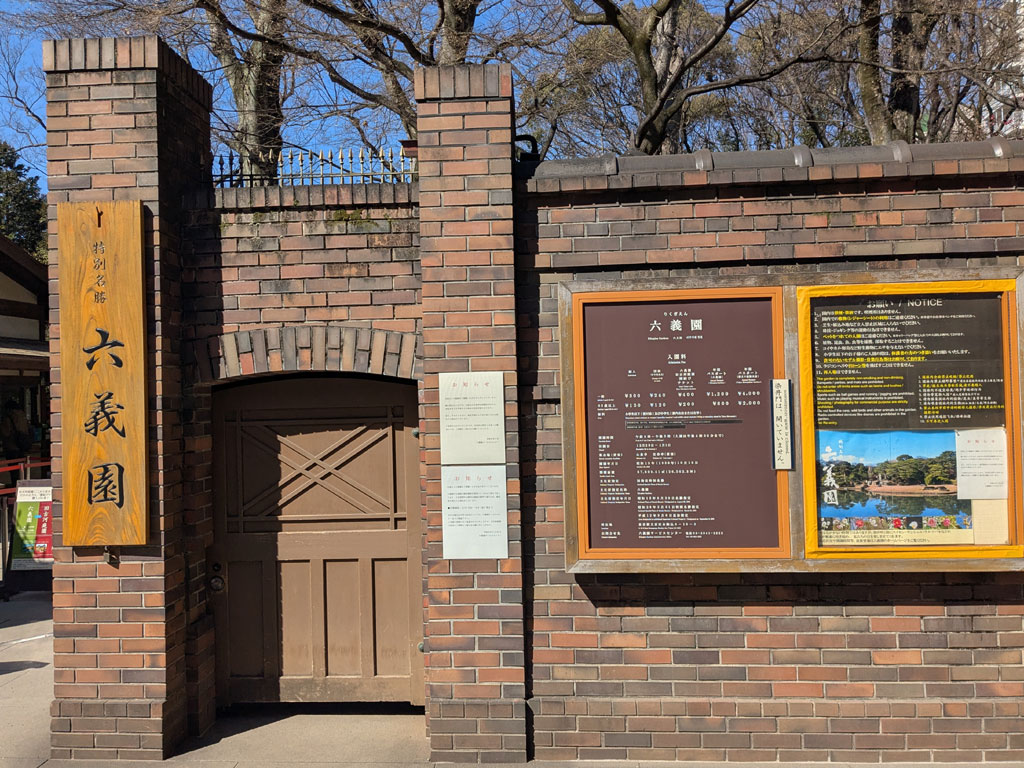 煎餅屋を出たら、また駅方面に戻り、すぐ近くにある「六義園」に行く。公園自体広いので、塀づたいに歩いて入り口に到着。塀もレンガ造りでしっかりしていてすごい。もとはお金持ちの庭らしいけど、すごすぎる。