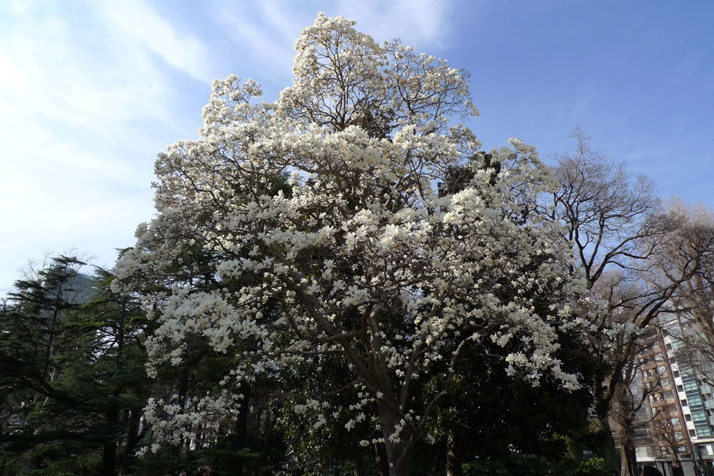 ハクモクレンが大きな花を咲かせていた。すごくきれい。