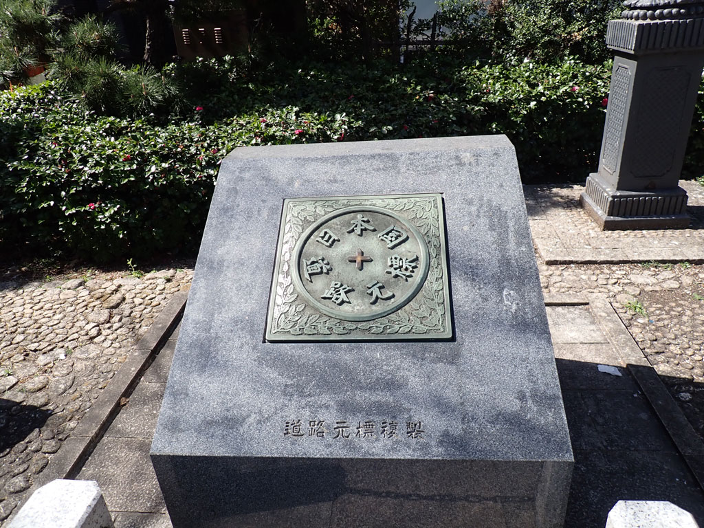 ここが、東京を指す場所となり、いろんな道路の起点となっている。道路の橋の真ん中あたりには起点を示す道標が埋まっているらしいけど、そのレプリカが近くに置いてある。こんど道路を通るとき、見るようにして見よう。よそ見は危ないかな?
