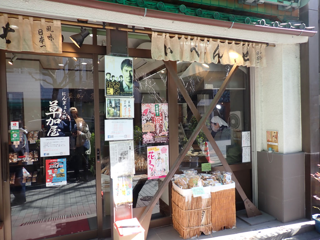 ということで、人形町をぶらぶら歩く。途中目に入った煎餅屋の草加屋。店先にあるこわれ煎餅が気になり、入ってみる。入り口右側では手焼きで煎餅を焼いている。なので手焼きせんべいを買おうと思ったら売り切れ。遅い時間だとすぐ売り切れてしまうのかな?