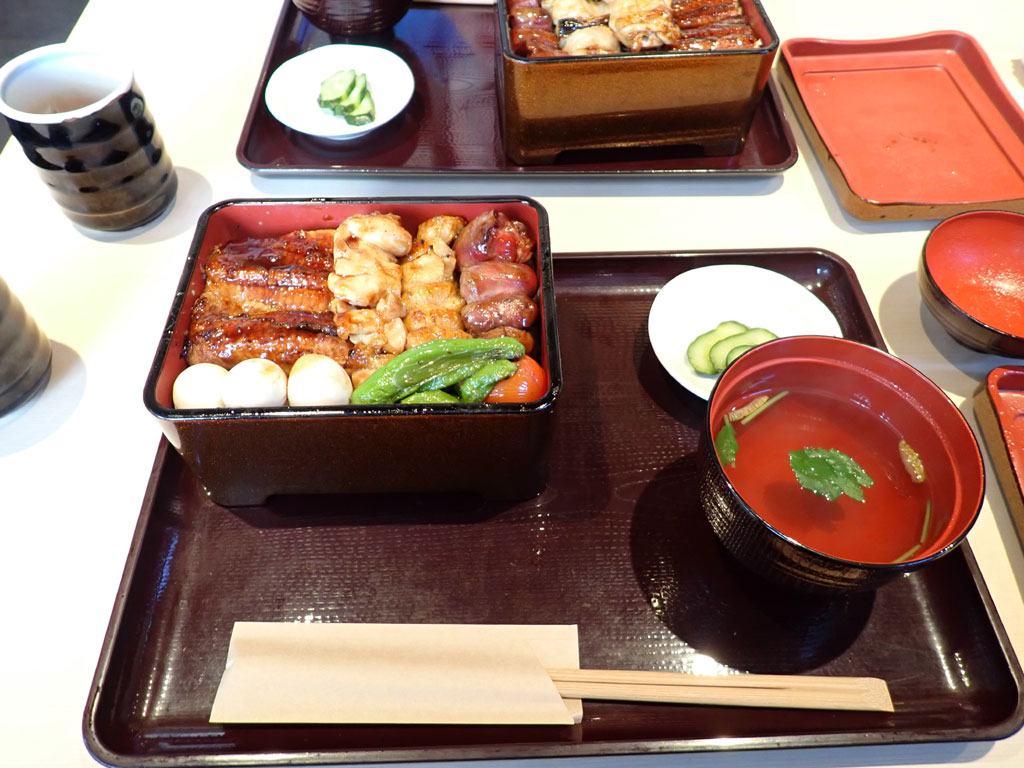まだ11:30だったので、お客はまばら。席に座って鰻&焼き鳥の「うな鳥重」を注文する。焼き鳥は5種類の部位の中から3つ選ぶ方式。豪華っぽい組み合わせにしてはそんなに高くなかったので、お得な内容かもしれない。