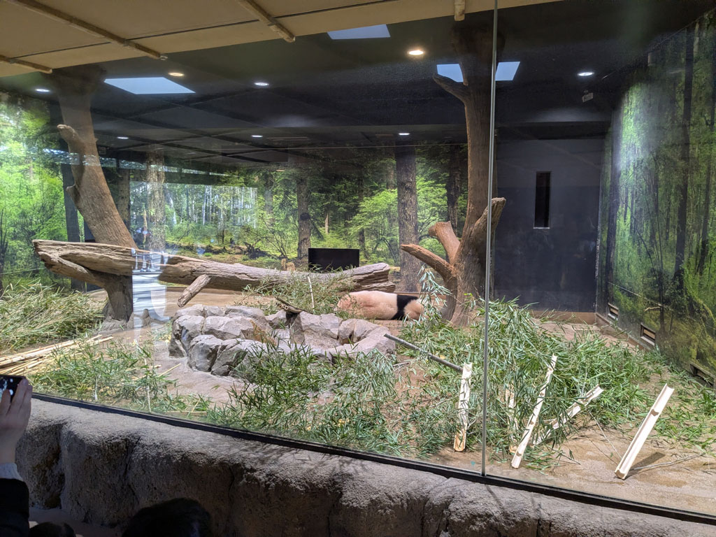 パンダは今、上野には2頭おり、最初にレイレイ舎に入る。どうやらお眠のようで、横たわっているだけだった。おっさん感高い。